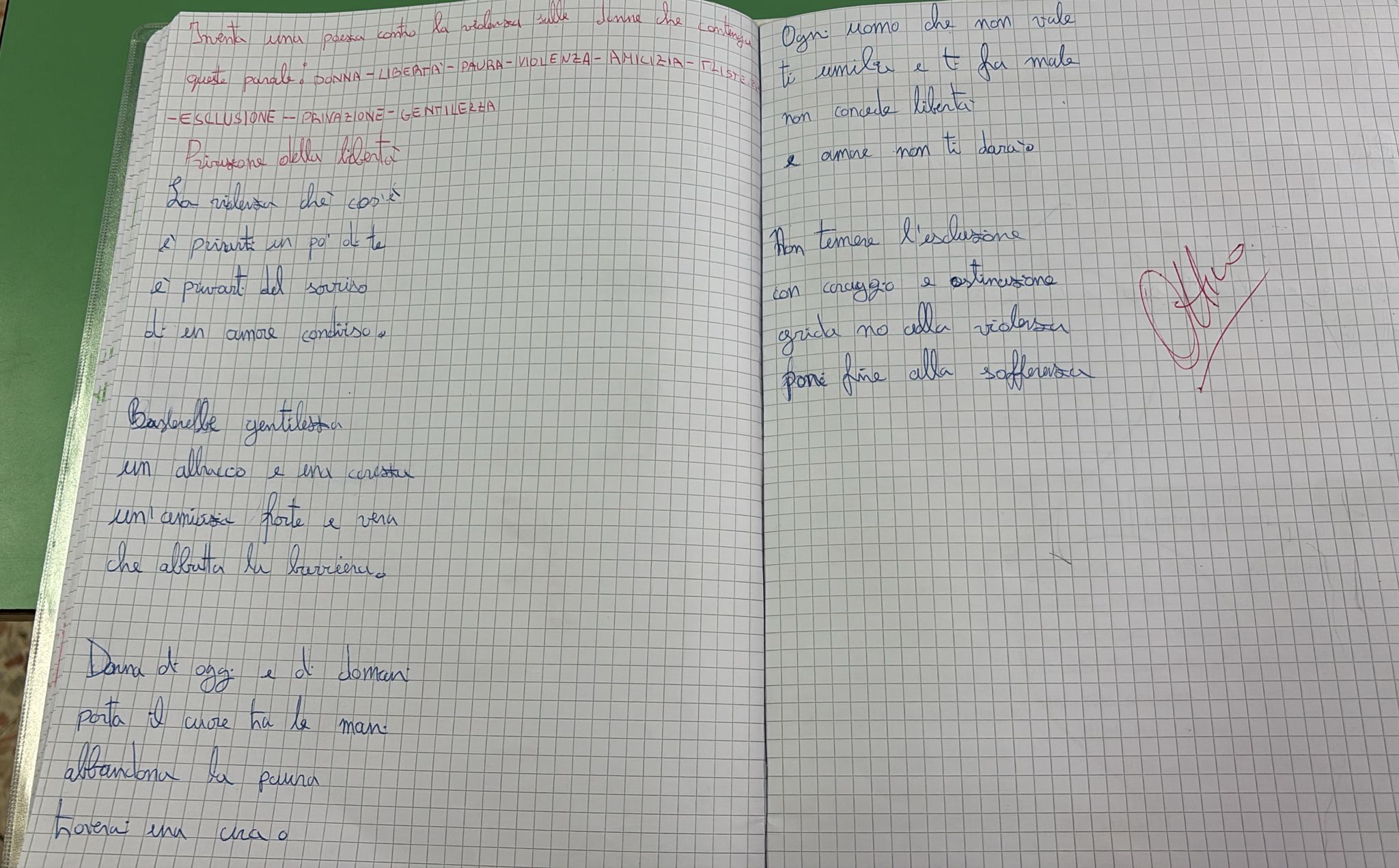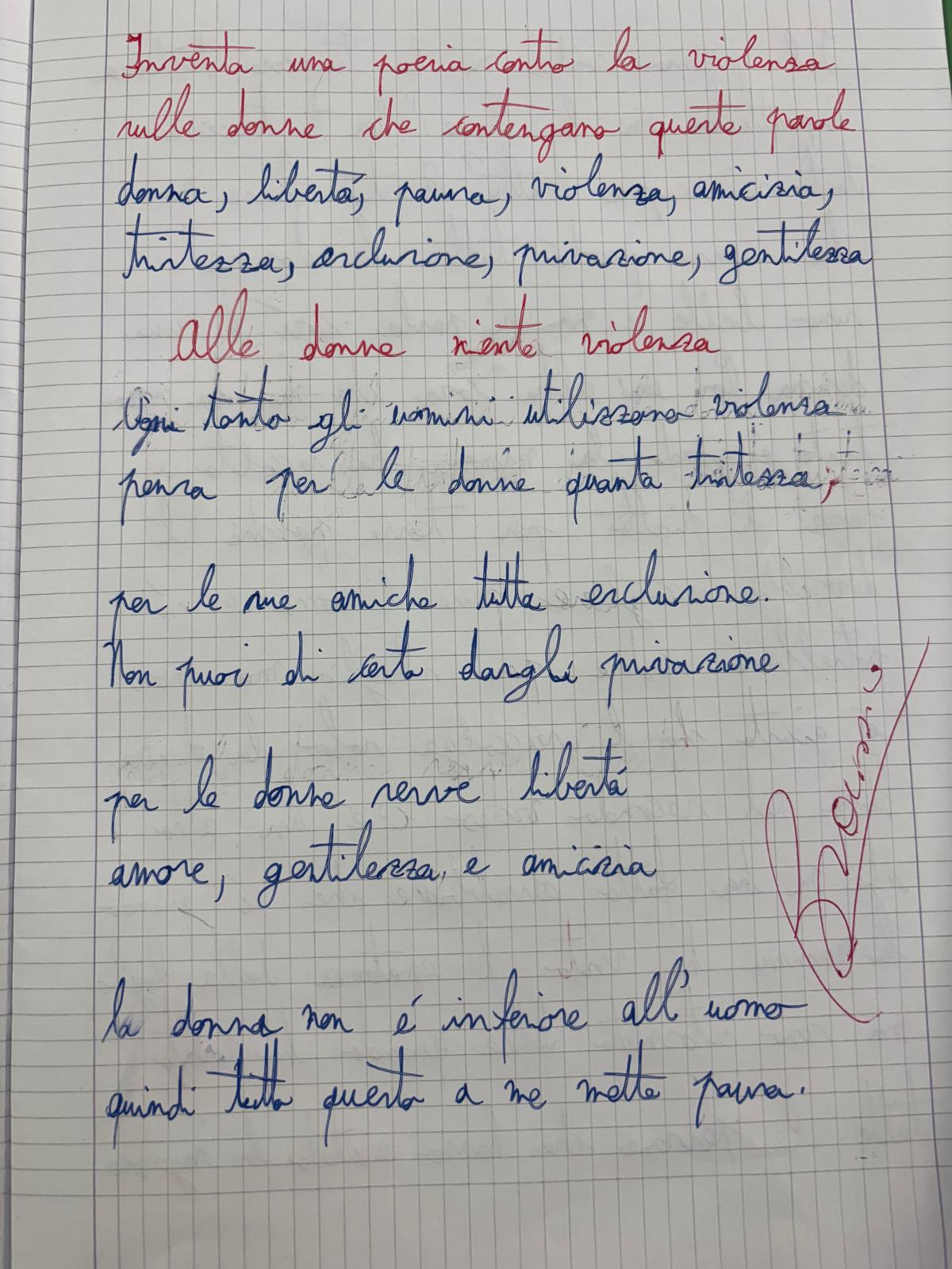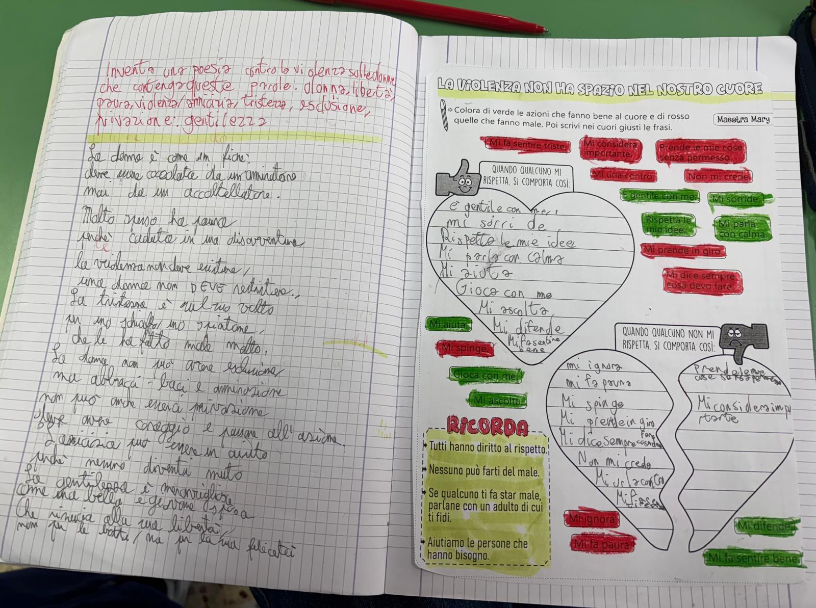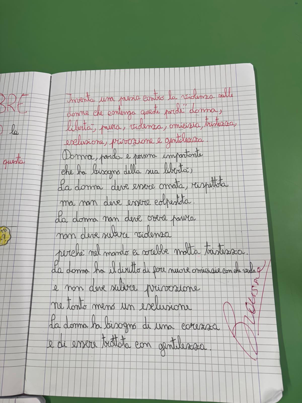 Educazione al rispetto e aver riflettuto ed espresso i propri pensieri sui comportamenti violenti messi in atto dagli uomini nei confronti delle donne, hanno realizzato due cartelloni e composto una poesia, dimostrando una grande sensibilità verso una delle più grandi violazioni dei diritti umani.