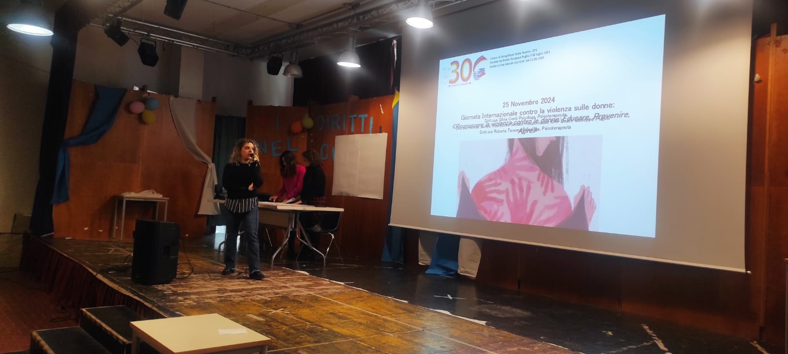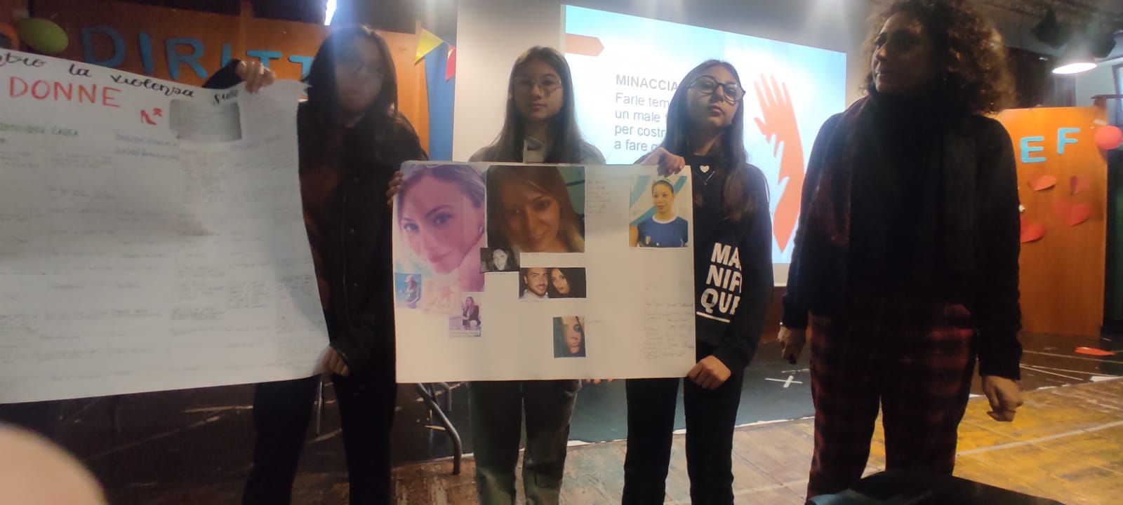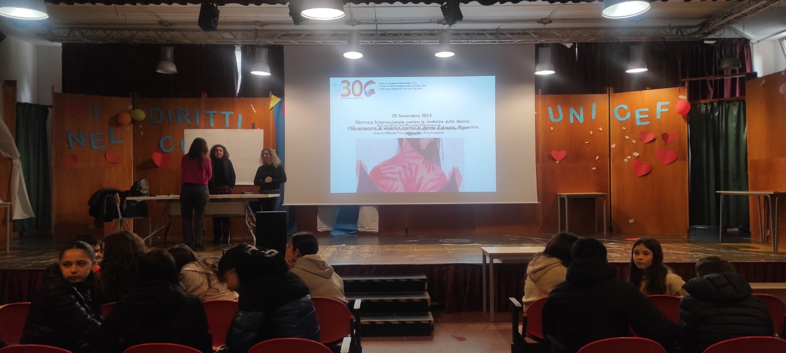 "IN OCCASIONE DELLA GIORNATA CONTRO LA VIOLENZA SULLE DONNE, ALCUNE CLASSI DELLA SCUOLA SECONDARIA DI PRIMO GRADO, HANNO PARTECIPATO AD UN INCONTRO FORMATIVO CONTRO LA VIOLENZA DI GENERE ALLA PRESENZA DI PSICOTERAPEUTI ED ALTRI OPERATORI DEL CAV (CENTRO ANTIVIOLENZA DEL CENTRO DI ACCOGLIENZA PADRE PINO PUGLISI DI PALERMO).