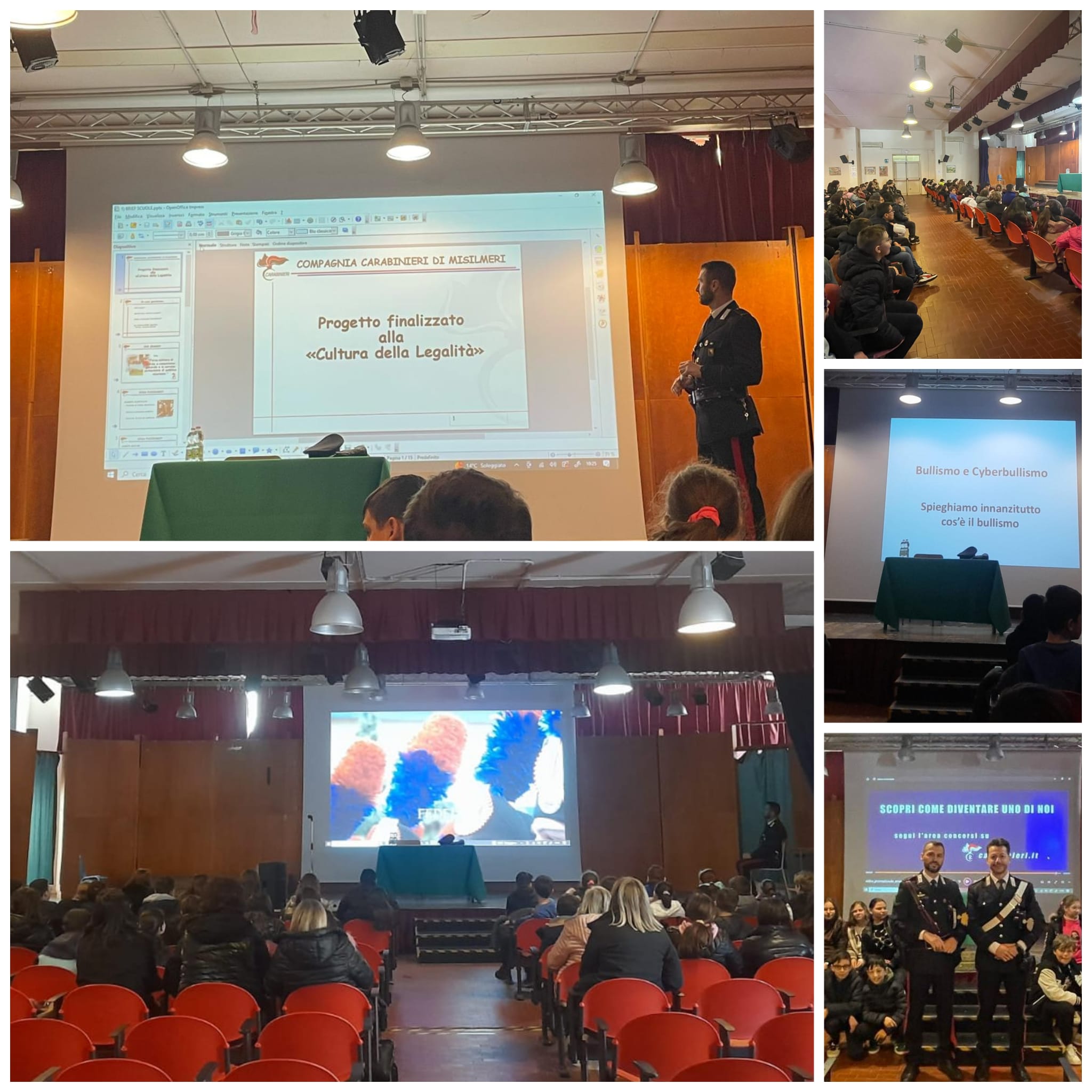 Nell'ambito del Progetto "Contributi della Legalità" promosso dal MI e dall'Arma dei Carabinieri, gli alunni delle Classi Quinte della Scuola Primaria sono stati protagonisti attivi di un importante incontro didattico tenuto dal Maresciallo Ortello Francesco e dal Vicebrigadiere Danilo Bellomare della Stazione di Belmonte Mezzagno. Il percorso formativo è stato incentrato sulla trattazione di importanti tematiche, prima tra tutte, l'illustrazione delle varie specializzazioni dell'Arma, compiti e ruoli, ancora si è discusso del fenomeno del Bullismo e del Cyberbullismo, in ultimo ma non meno importante durante l'incontro è stato approfondito anche il tema dell'educazione stradale.